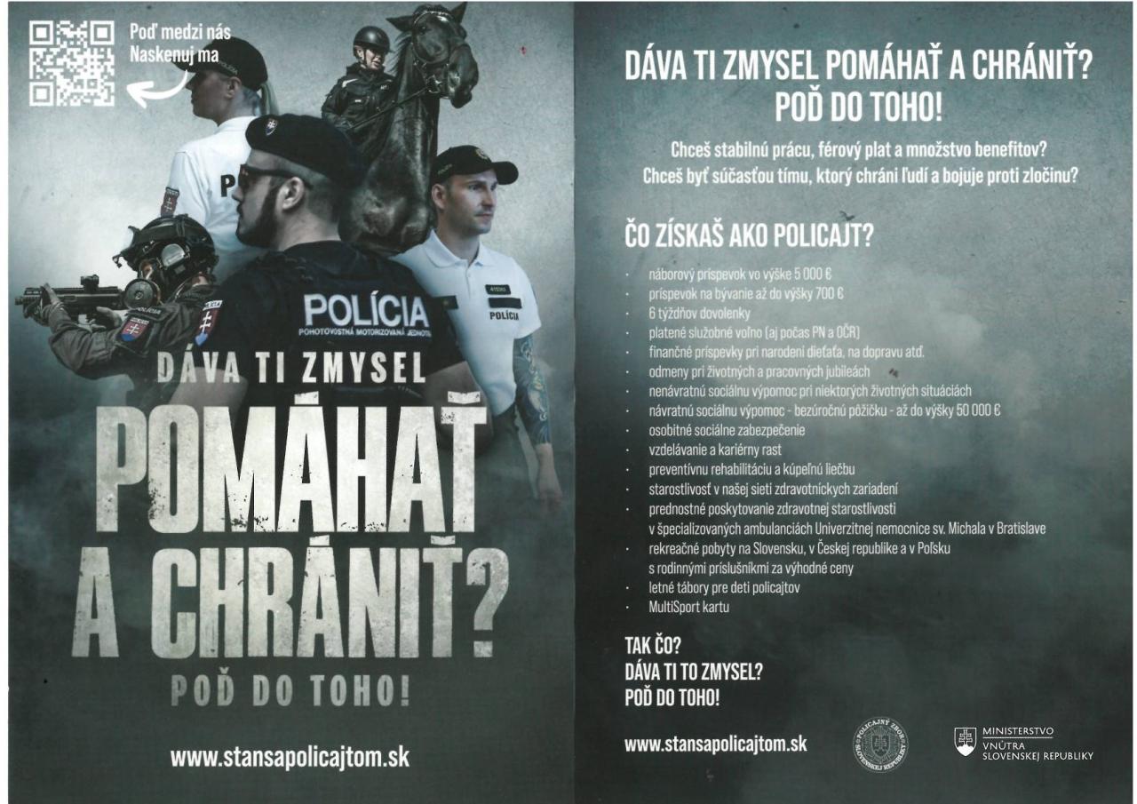 Preto hľadáme nových kolegov do tímu. Takých, ako sme my. Ktorí chcú vo svojom živote ctiť a chrániť zákon, chcú ku každému pristupovať individuálne a spravodlivo. Takých, čo majú chuť prehlbovať svoje znalosti a odbornosť a nič ich v tom nezastaví.
